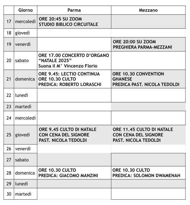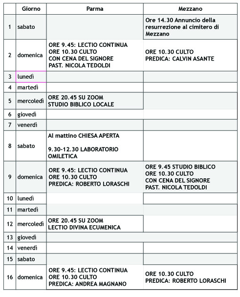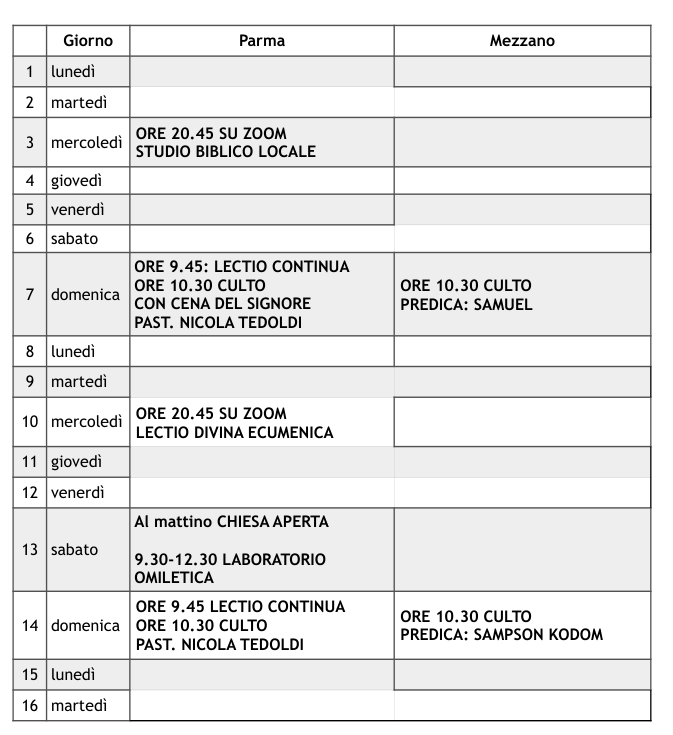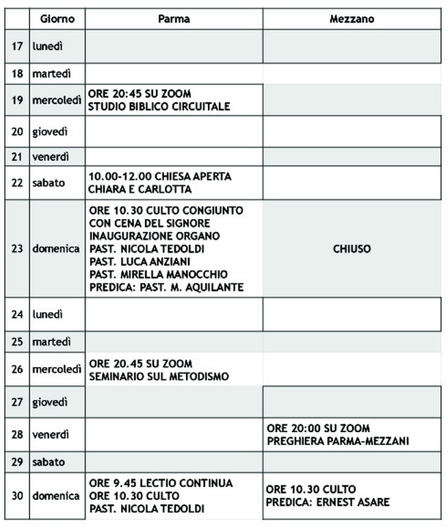 piano culti e attività - Chiesa Evangelica Metodista di Parma-Mezzani