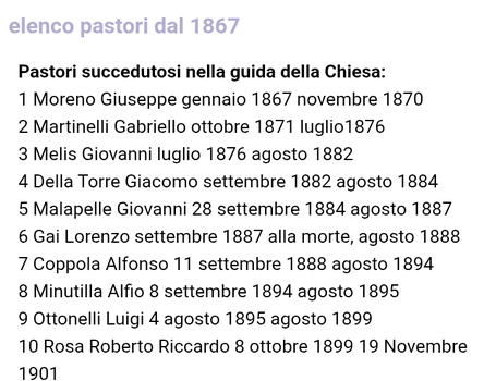 elenco pastori dal 1867