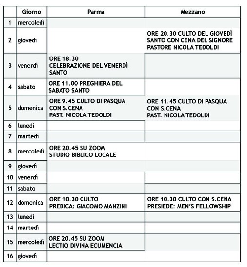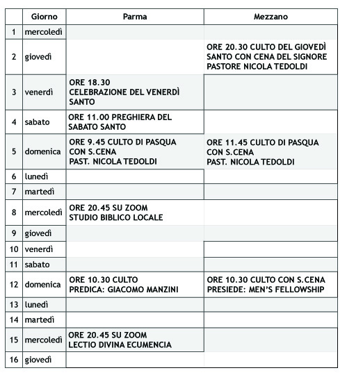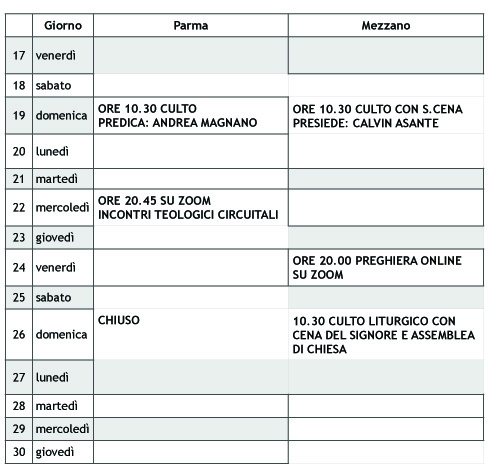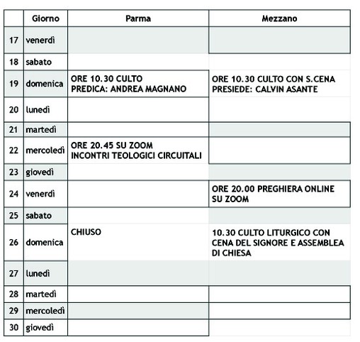 piano culti e attività - Chiesa Evangelica Metodista di Parma-Mezzani